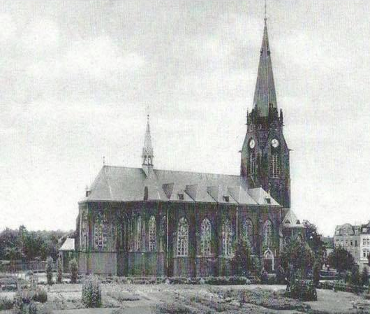 Die erste heilige Messe feierten die Holter Katholiken am 23. Dezember 1900 in der dreischiffigen Hallenkirche. Damals hatte sie natürlich einen intakten Turmhelm. Zwei Jahre Bauzeit gingen voraus, verantwortlicher Architekt war der Kölner Josef Kleesattel. "Die Kirche steht auf ehemaligem Mönchsgelände", weiß Hans Bolten, der von 1976 bis 2009 Vorsitzender des Kirchenvorstands war. Einst hätte der Bauplatz zum Kammerbusch gehört, der die Benediktiner der Gladbacher Abtei mit Brennholz versorgt habe. Auf diese Zeit verweist noch heute ein alter Grenzstein, der links neben der Treppe zum Eingang auf einen Sockel gemauert ist. Darauf ist ein Abtsstab gemeißelt. "Den Stein hat wohl irgendwann mal ein Holter Bürger gefunden", sagt Hans Bolten.