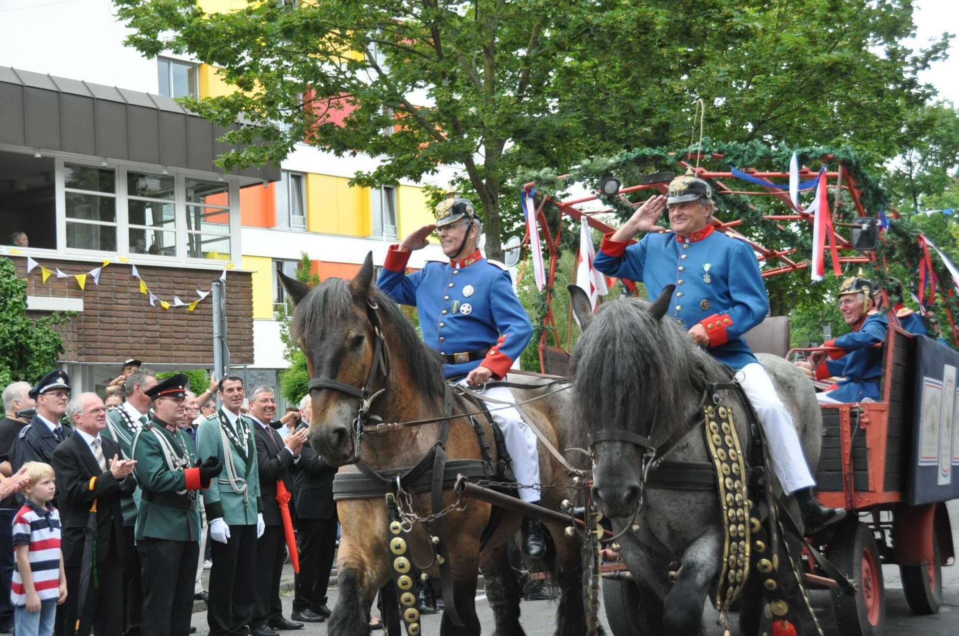 Die Pickelhauben nahmen in diesem Jahr erstmalig, im offenen Fonds eines "betagten" Landrover, an der Parade teil.